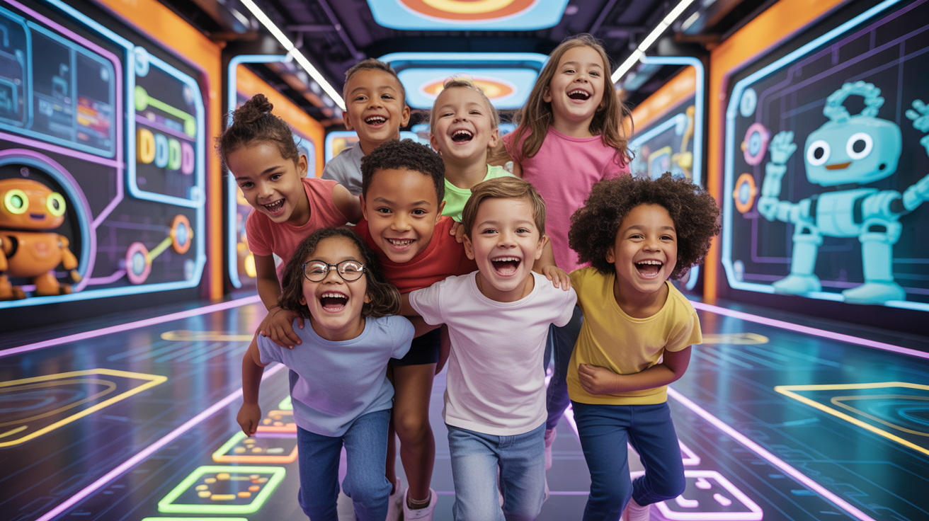 20 incredible zones where kids create games, train AI, race robots, step inside digital worlds, and take home real creations. Not just play — the future.
